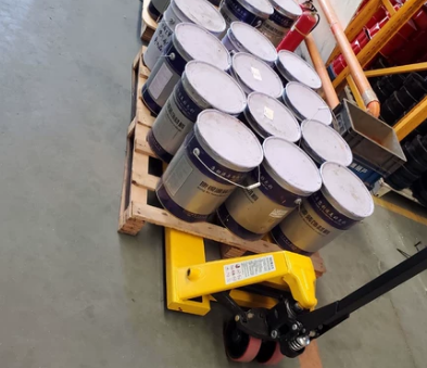 手動(dòng)液壓搬運(yùn)車參與罐頭廠倉(cāng)庫(kù)搬...